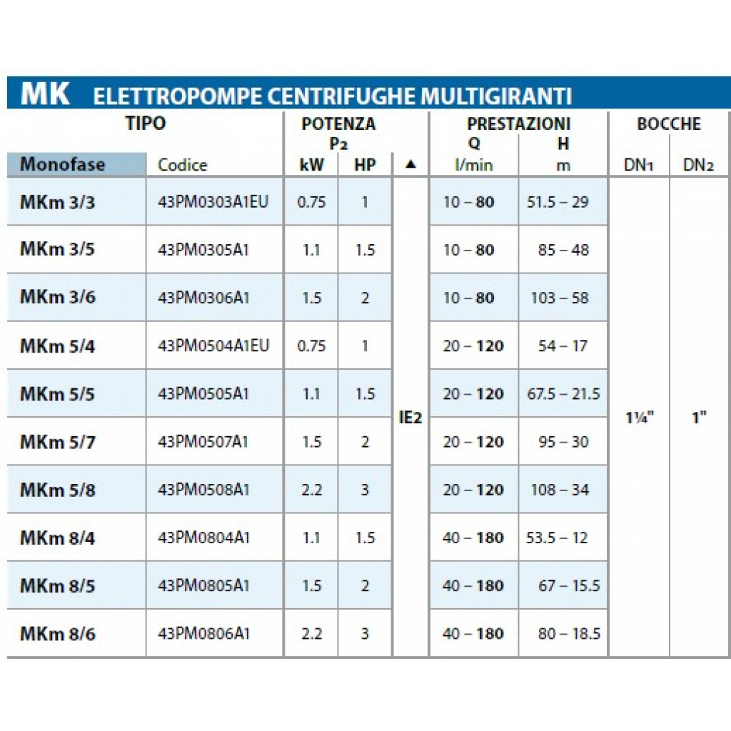 ELETTROPOMPA MULTISTADIO VERTICALE PEDROLLO MONOFASE MKM 5/7 kW 1.5-HP 2